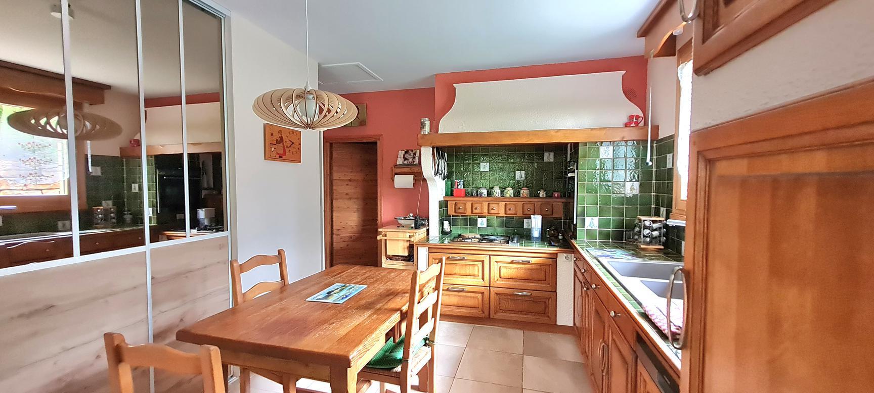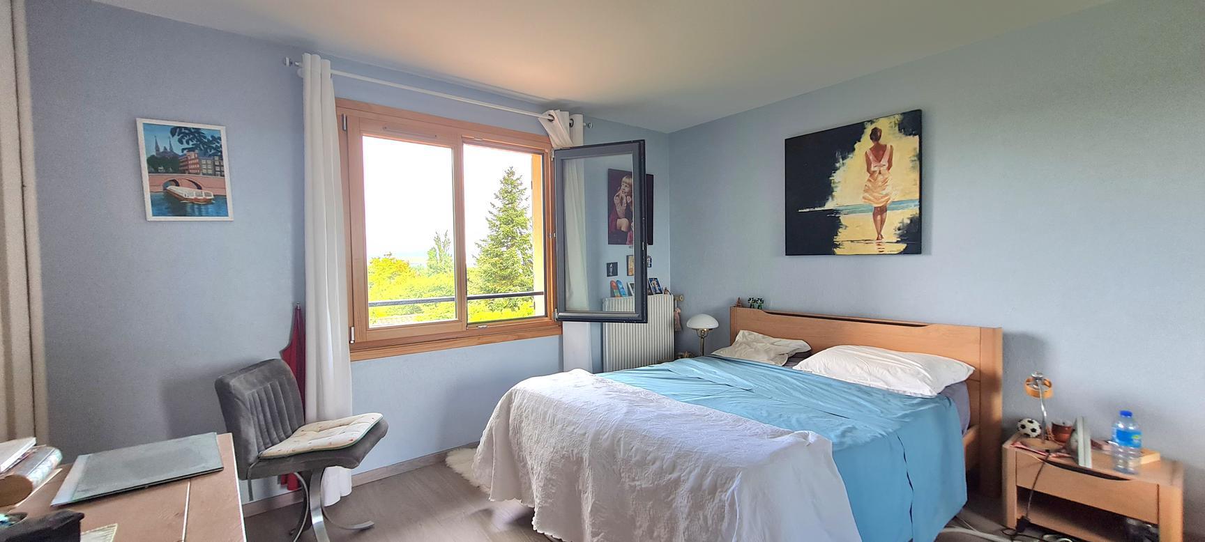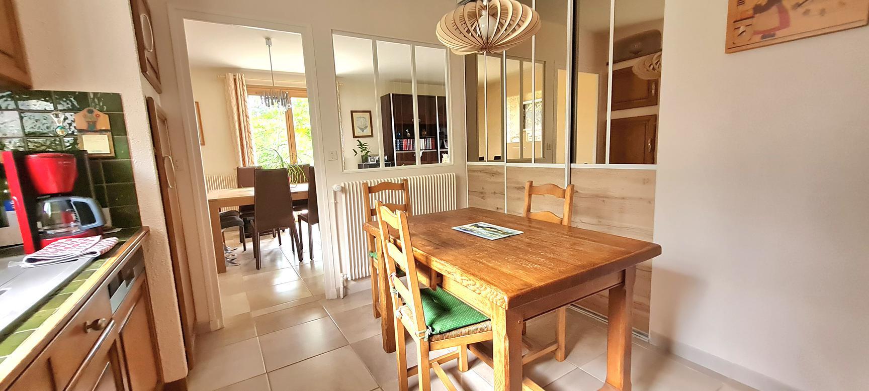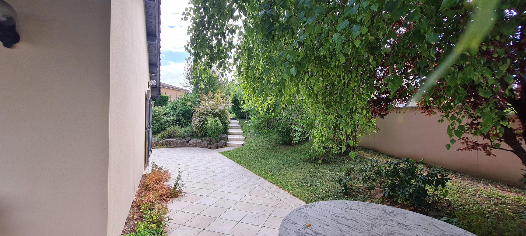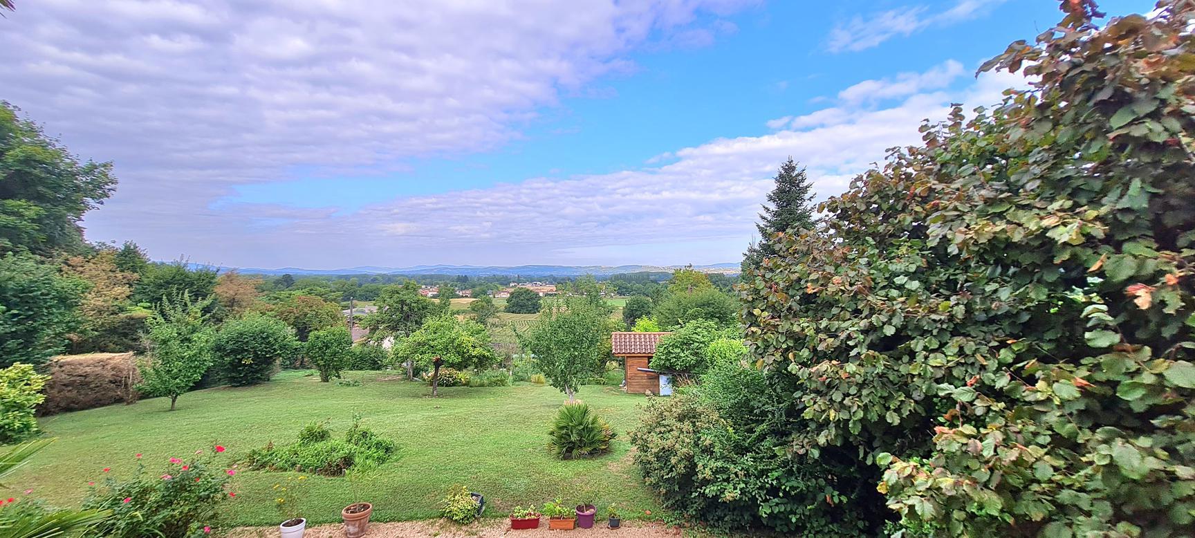 Sur les hauteurs de Reyrieux : venez découvrir dans un environnement calme et verdoyant, offrant une vue dégagée et sans vis à vis, cette charmante maison de 121 m² habitables + annexes 41 m² (garage, atelier et cave), carport de 18 m², 2 places de stationnement sur un joli terrain de 1531 m² ( + chemin d'accès 183 m²) arboré et végétalisé avec soin.