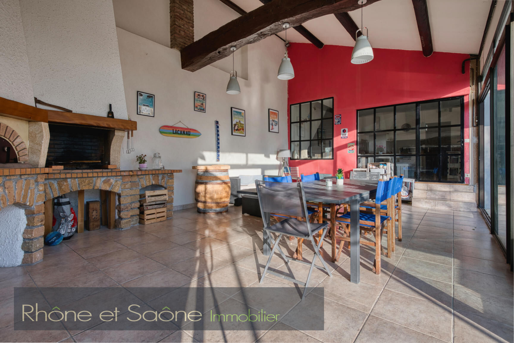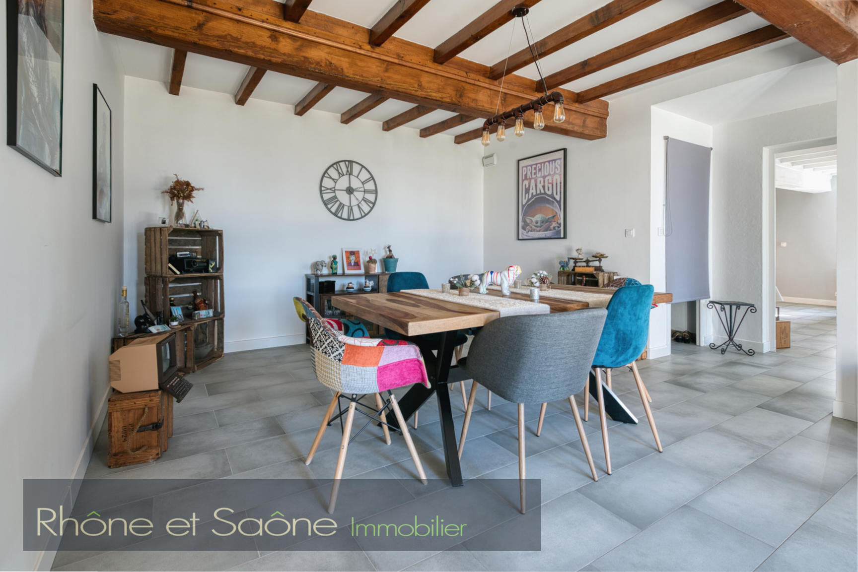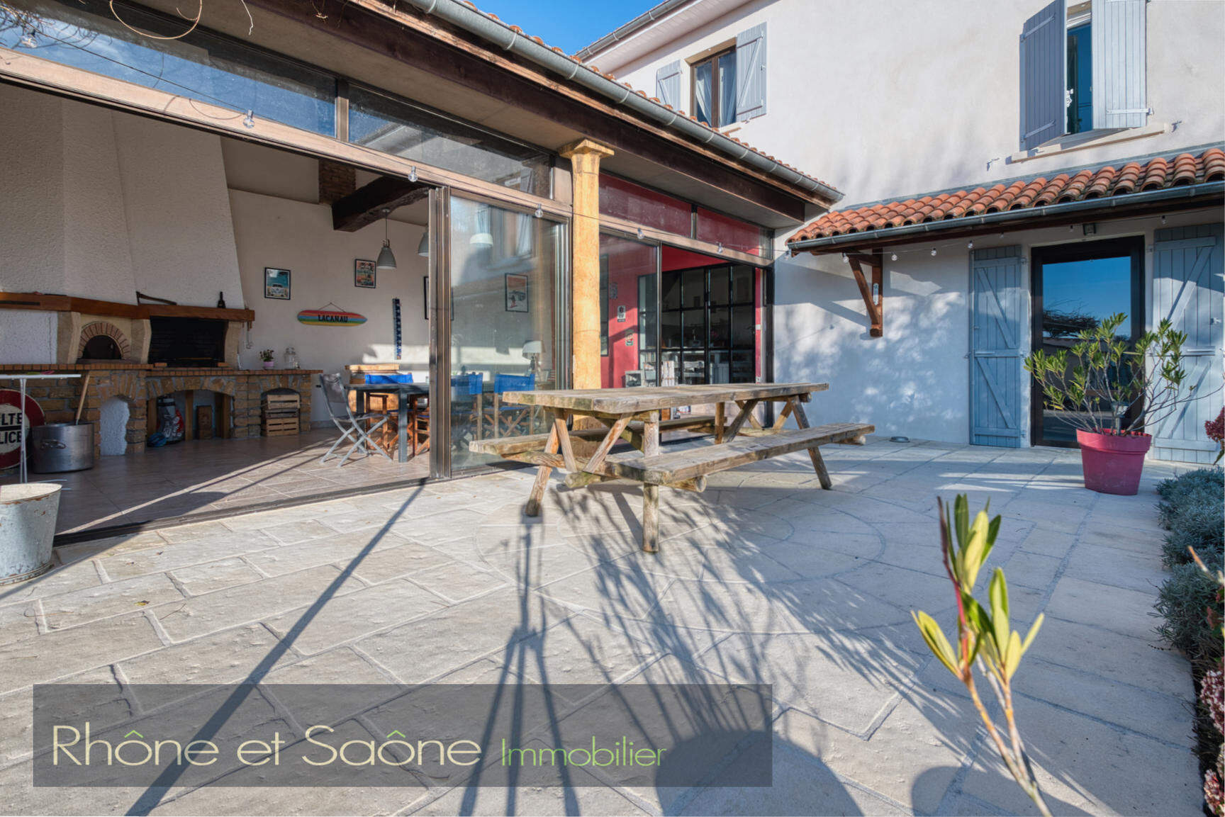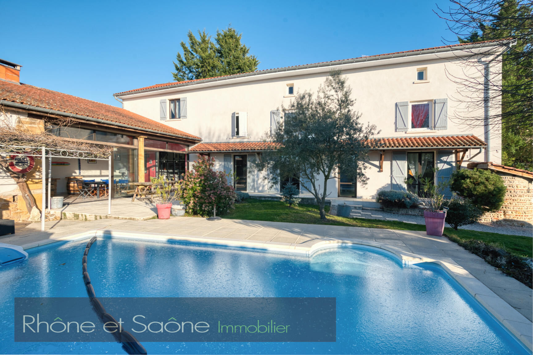 En exclusivité sur la commune prisée de Reyrieux, à proximité de toutes les commodités à pied (collège, arrêt de cars scolaires et Saônibus, écoles et commerces), accès A 46 à 5 minutes : Coup de cœur assuré pour cet ancien corps de ferme rénové d'environ 270 m² (5 chambres possibilité 6 / 7) avec véranda de 41 m² sur un terrain clôt, arboré et végétalisé de 764 m² avec piscine et sa plage, terrasses, cour pour garer 5 voitures, abri moto, abri de jardin, local piscine et un puits.