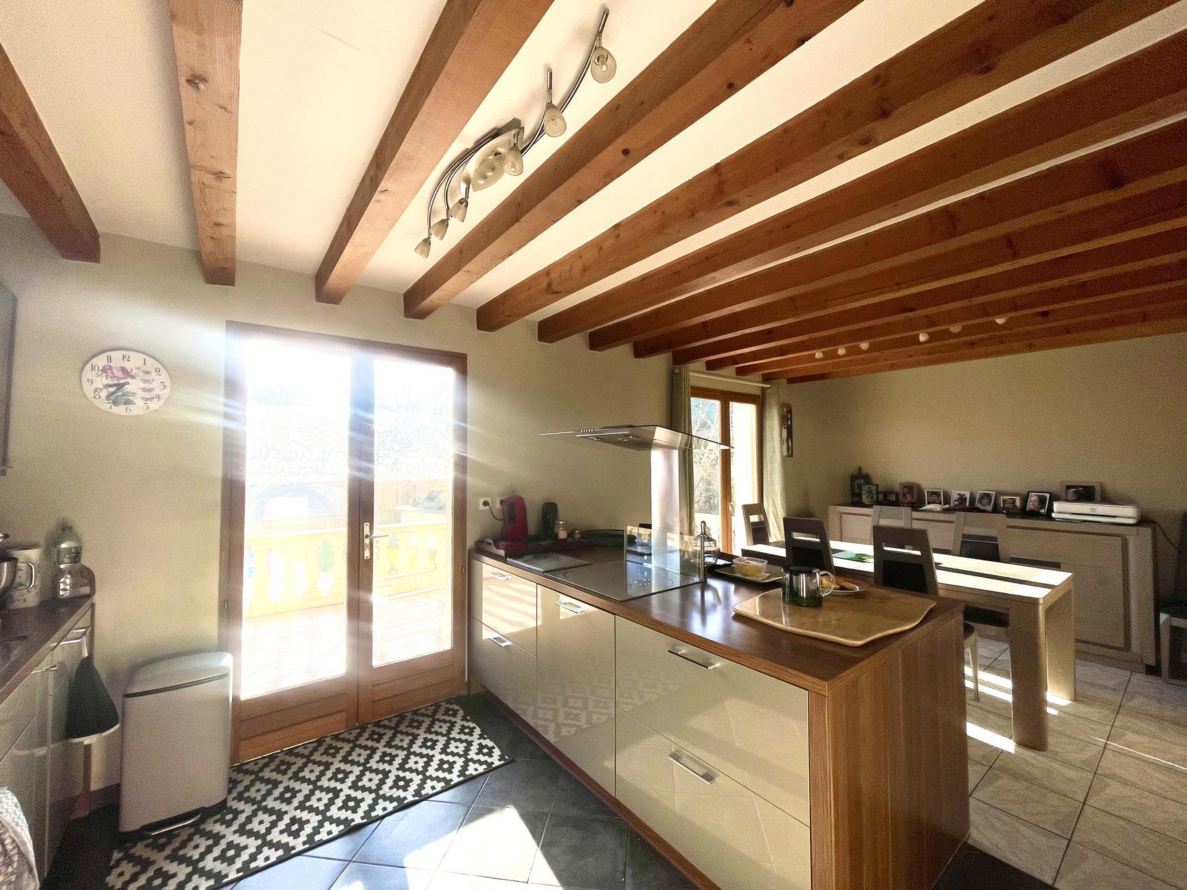 Maison familiale à Niévroz de 125 m² habitables sur une parcelle paysagée et arborée de 916 m² avec piscine et jacuzzi.