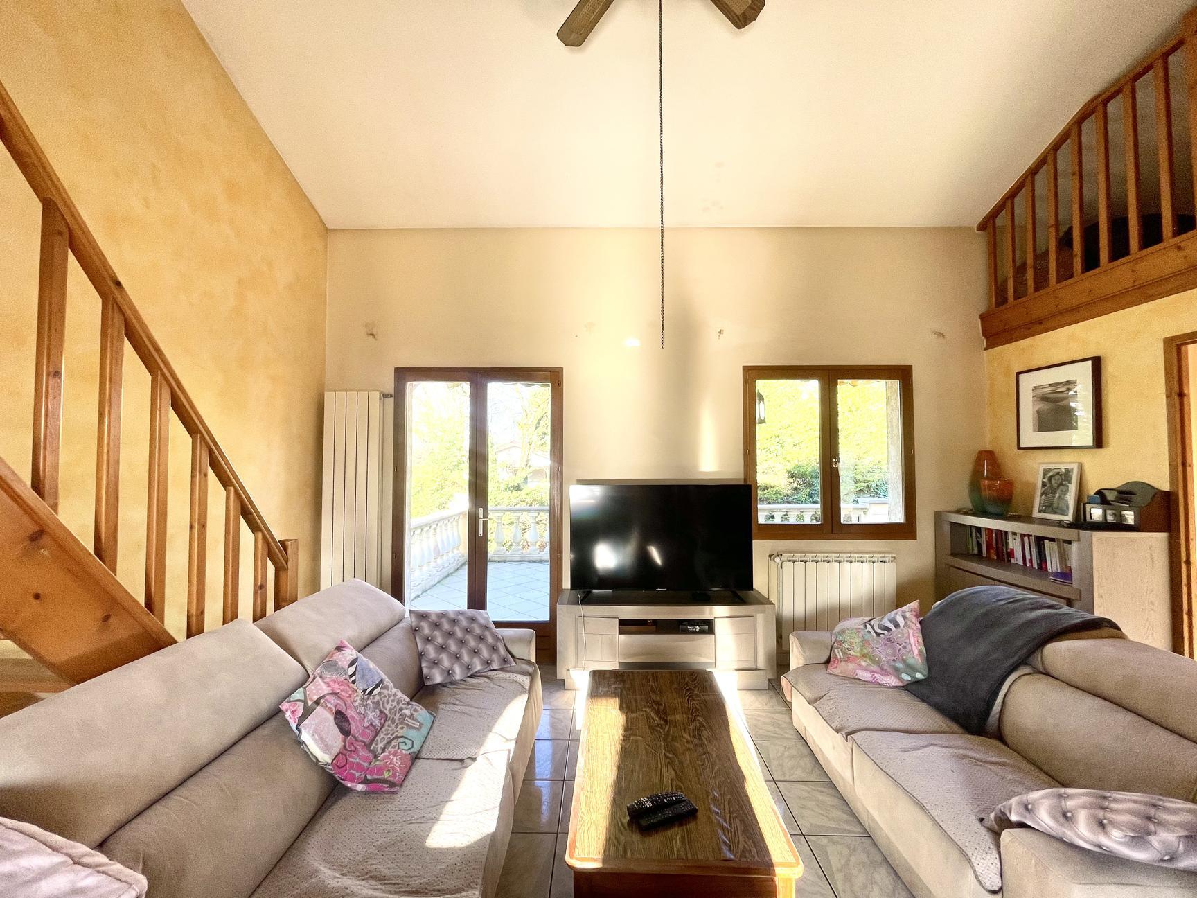 L’entrée principale se situe sur un premier demi-niveau et s’ouvre sur une belle pièce de vie lumineuse traversante Est-Ouest d’environ 40 m². Cet espace accueille une cuisine ouverte entièrement équipée, une salle à manger avec accès direct à une terrasse exposée Est, ainsi qu’un salon prolongé par une terrasse Ouest. Une mezzanine surplombe cet ensemble, apportant du volume et un espace complémentaire aménageable. En demi-niveau supérieur, l’espace nuit se compose de trois chambres, dont une avec dressing, ainsi qu’une salle de bain et des WC suspendus indépendants. En demi-niveau inférieur (de plain-pied), vous trouverez un espace comprenant une seconde cuisine, un garage aménagé avec accès également côté jardin, ainsi qu’une salle d’eau avec WC, idéal pour une activité indépendante, un espace invités ou la création d’une suite parentale. Un second garage complète ce niveau. Un sous-sol semi-enterré propose deux pièces supplémentaires, idéales pour du stockage ou un futur aménagement. À l’extérieur, le terrain offre un cadre de vie agréable avec une piscine équipée d’une nage à contre-courant et d’un jacuzzi intégré, une cuisine d’été aménagée, un potager, un abri de jardin ainsi que plusieurs places de stationnement. Un bien aux volumes bien pensés, offrant une circulation fluide et un fort potentiel d’aménagement. Pour visiter Eloria Boudes O6.1O. 31.27. O5 Vous pouvez contacter Eloria BOUDES 06 10 31 27 05 eloria.boudes@rhone-saone-immo.com.