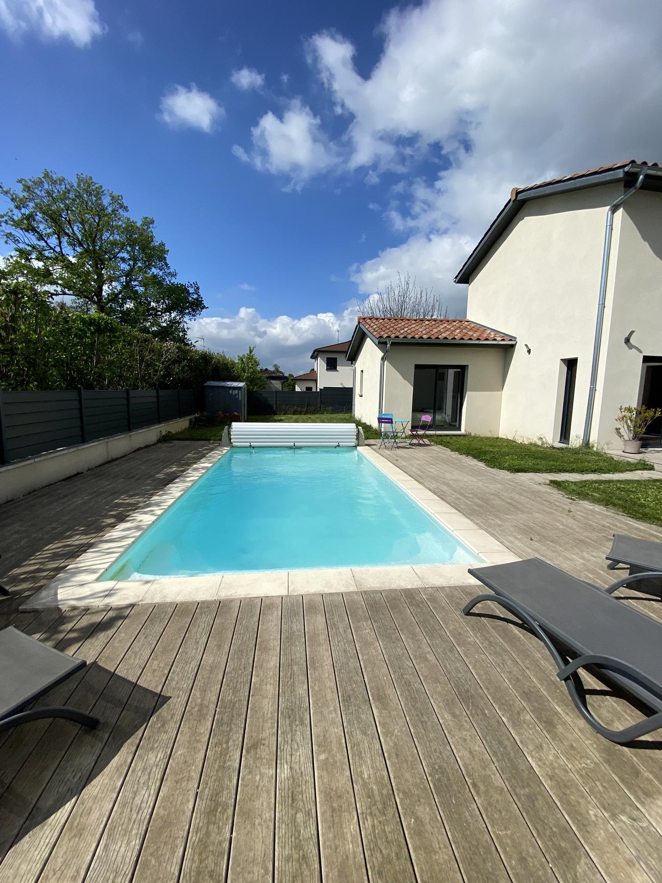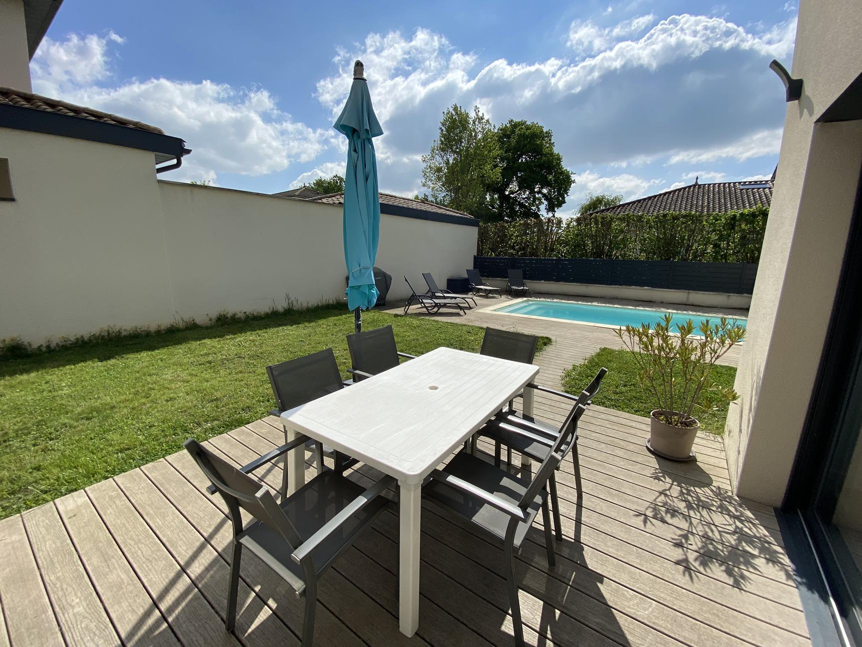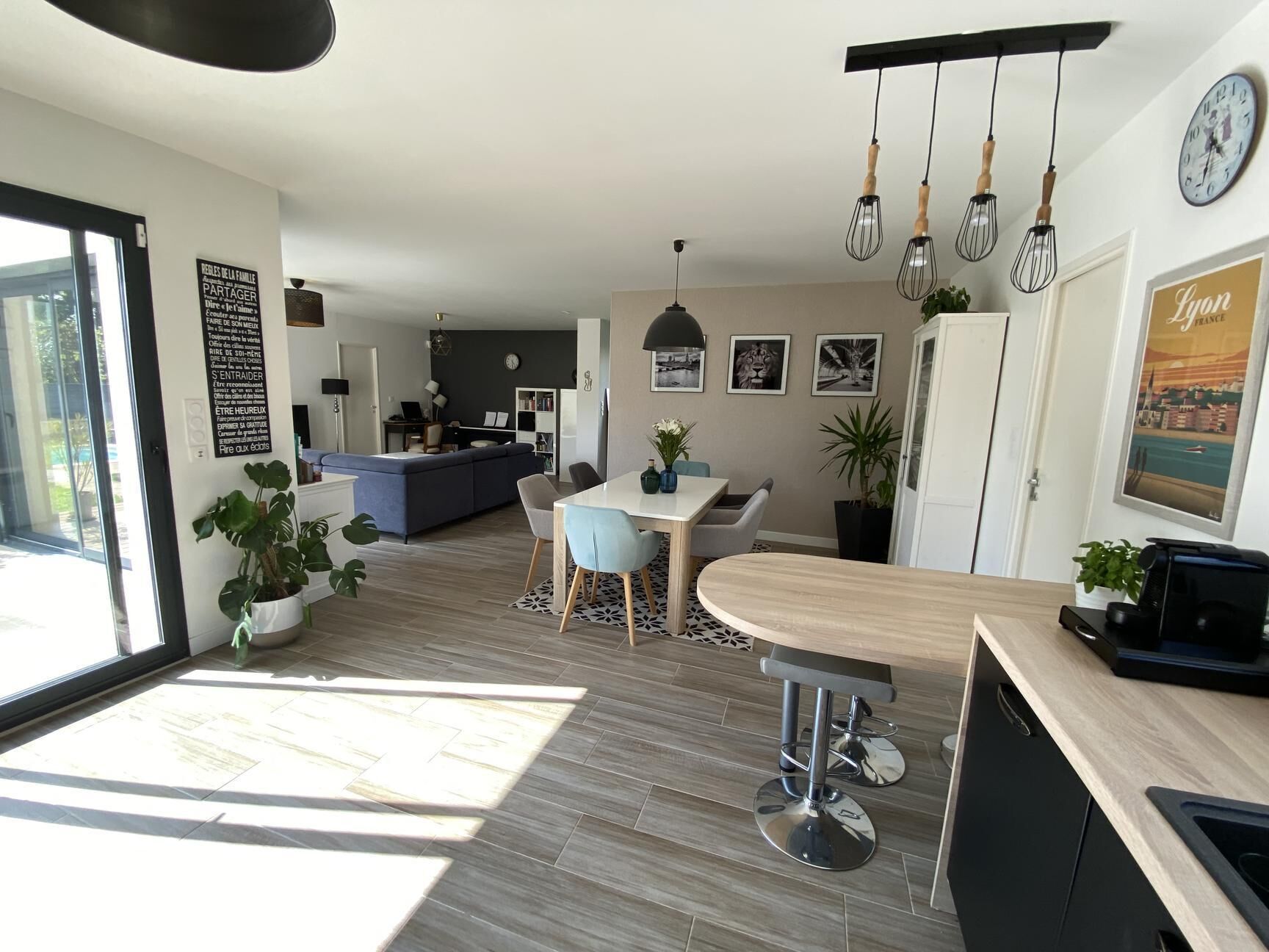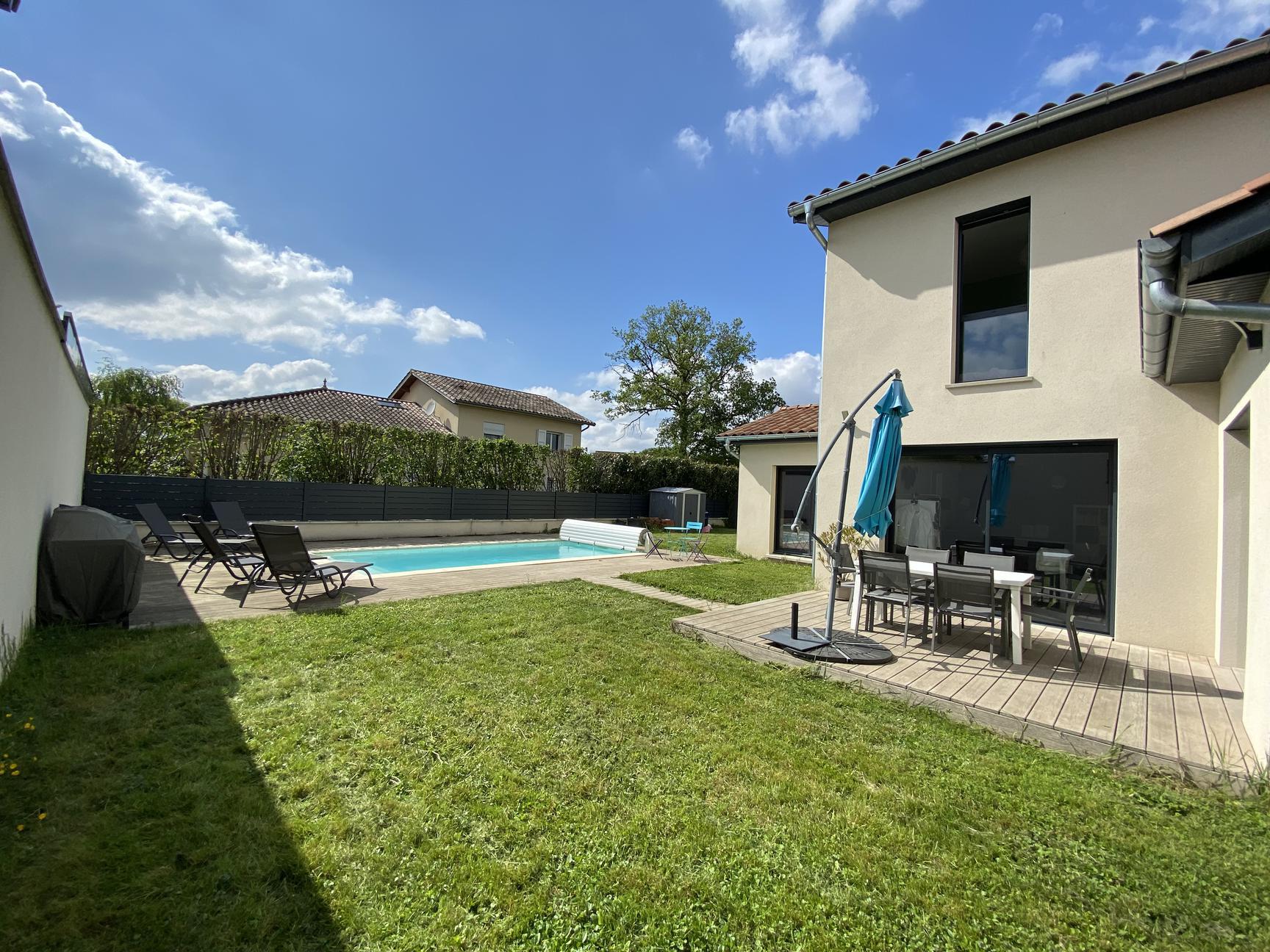 EXCLUSIVITE sur Fareins à moins de 10 min de Villefranche sur Saône ! Centre village, à 2 pas de toutes les commodités à pied, coup de coeur assuré pour cette villa de 2018 (constructeur Arlogis) de 126 m² au calme et sans vis à vis dans petit lotissement familial, le tout sur une parcelle de 500 m² avec piscine ! Elle se compose au RDC d'un hall d'entrée, d'une belle pièce de vie lumineuse de 50 m² avec cuisine US meublée équipée ouvrant sur une terrasse en bois composite de 14 m², d'un cellier / buanderie, d'une suite parentale (avec salle d'eau et dressing), et d'un wc.