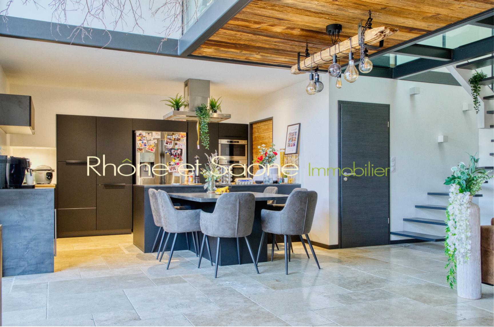 Très lumineuse et parfaitement optimisée, elle bénéficie d’un excellent classement énergétique DPE A, grâce à sa pompe à chaleur avec plancher chauffant / réfrigérant au RDC et air pulsé à l’étage. Au rez-de-chaussée, une magnifique pièce de vie de 55 m² avec sa cuisine US Schmidt, un cellier / buanderie attenant et un WC, le tout ouvrant sur la piscine par une grande baie vitrée à galandage. À l’étage, trois belles chambres (16 / 14 / 9 m²), ainsi qu’une spacieuse salle de bain avec baignoire, douche italienne et double vasque et WC. Un abri de jardin permet de ranger vélos et moto. Belles finitions, charme et confort moderne, peu d’entretien, à visiter au plus vite au 06 62 16 58 29 ! Vous pouvez contacter Laurence CAILLAUD 06 62 16 58 29 laurence.caillaud@rhone-saone-immo.com.