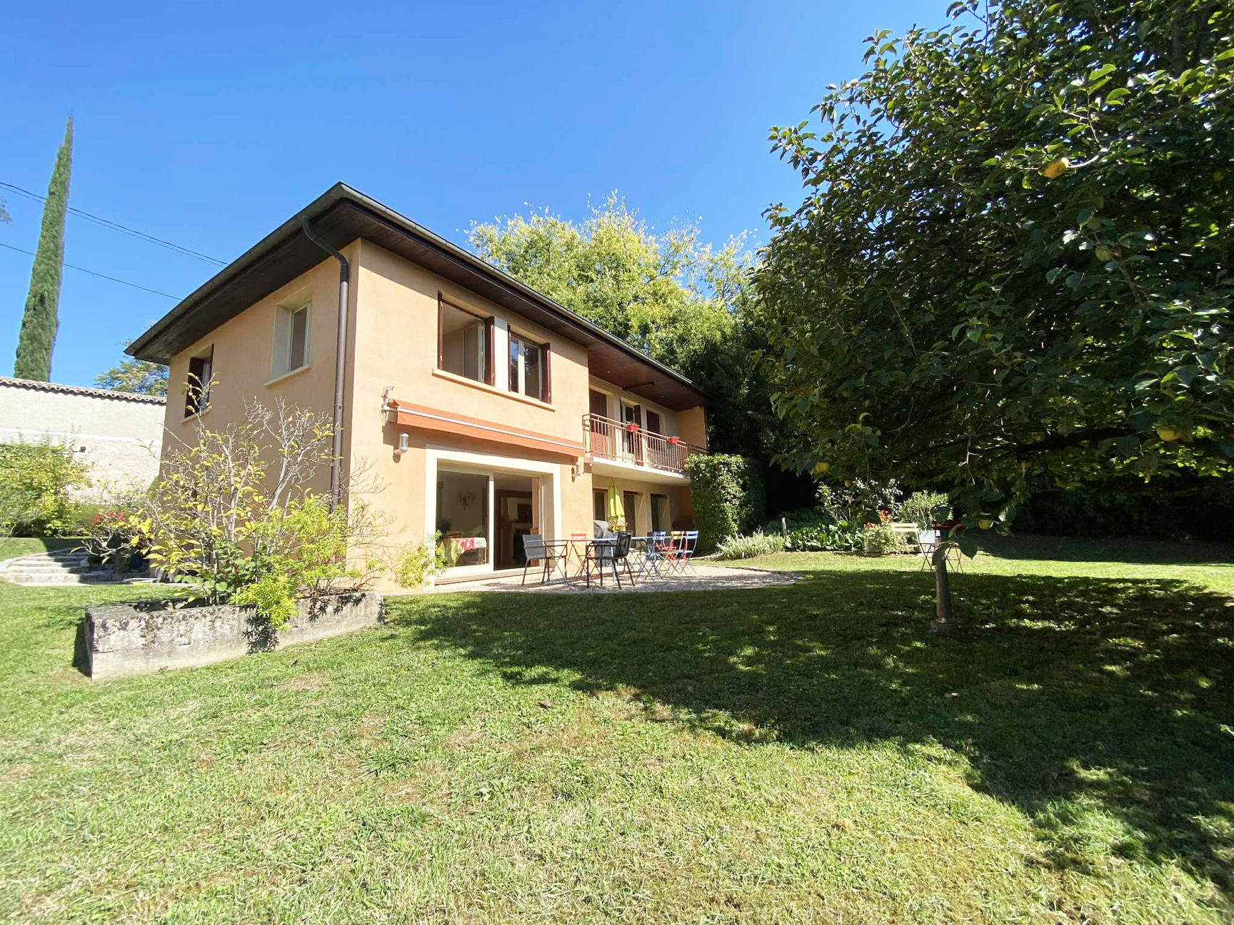 Une grande pièce de vie très lumineuse ouvrant sur la terrasse extérieur au sud, une cuisine ouverte meublée équipée, un salon cosy avec sa cheminée bois, une buanderie, un dressing, une cave à vin et un wc indépendant. À l’étage un espace ouvert bibliothèque bureau, 4 belles chambres dont 2 avec l’accès au balcon, une SDB baignoire et douche et 1 wc indépendant. Un abri de jardin sous la terrasse nord. Possibilité d’extension, chauffage gaz de ville, au calme Un petit écrin dans la ville à découvrir au plus vite au 06 18 48 69 20 ! Vous pouvez contacter Irène KOHUT 06 18 48 69 20 irene.kohut@rhone-saone-immo.com.