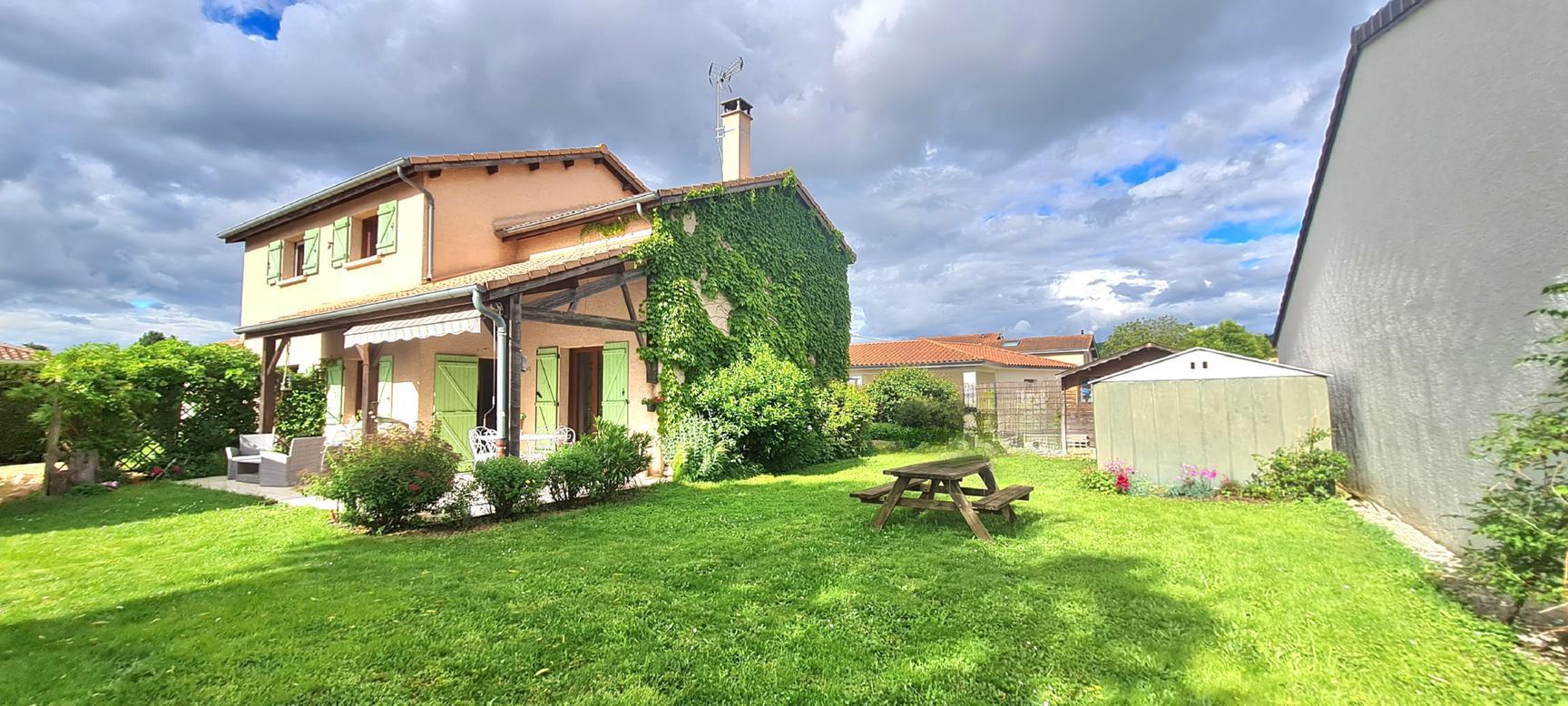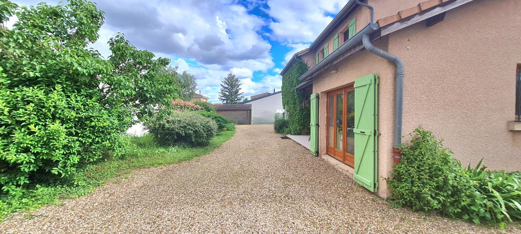 Reyrieux, à 5 minutes de l'accès A46,15 minutes à pied de toutes commodités (commerces, écoles, collège Jean Compagnon et arrêt de car pour Lycée), au calme et hors lotissement : Venez découvrir cette charmante maison de 160 m² (4 chambres, possibilité 5 ou garage) offrant la possibilité de vivre de plain pied sur un terrain piscinable de 695 m².