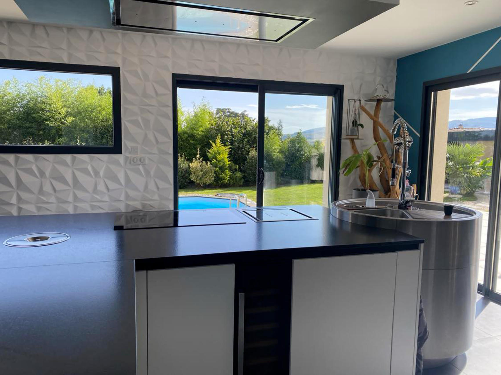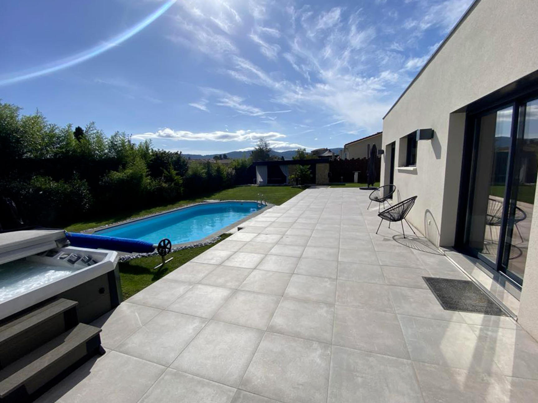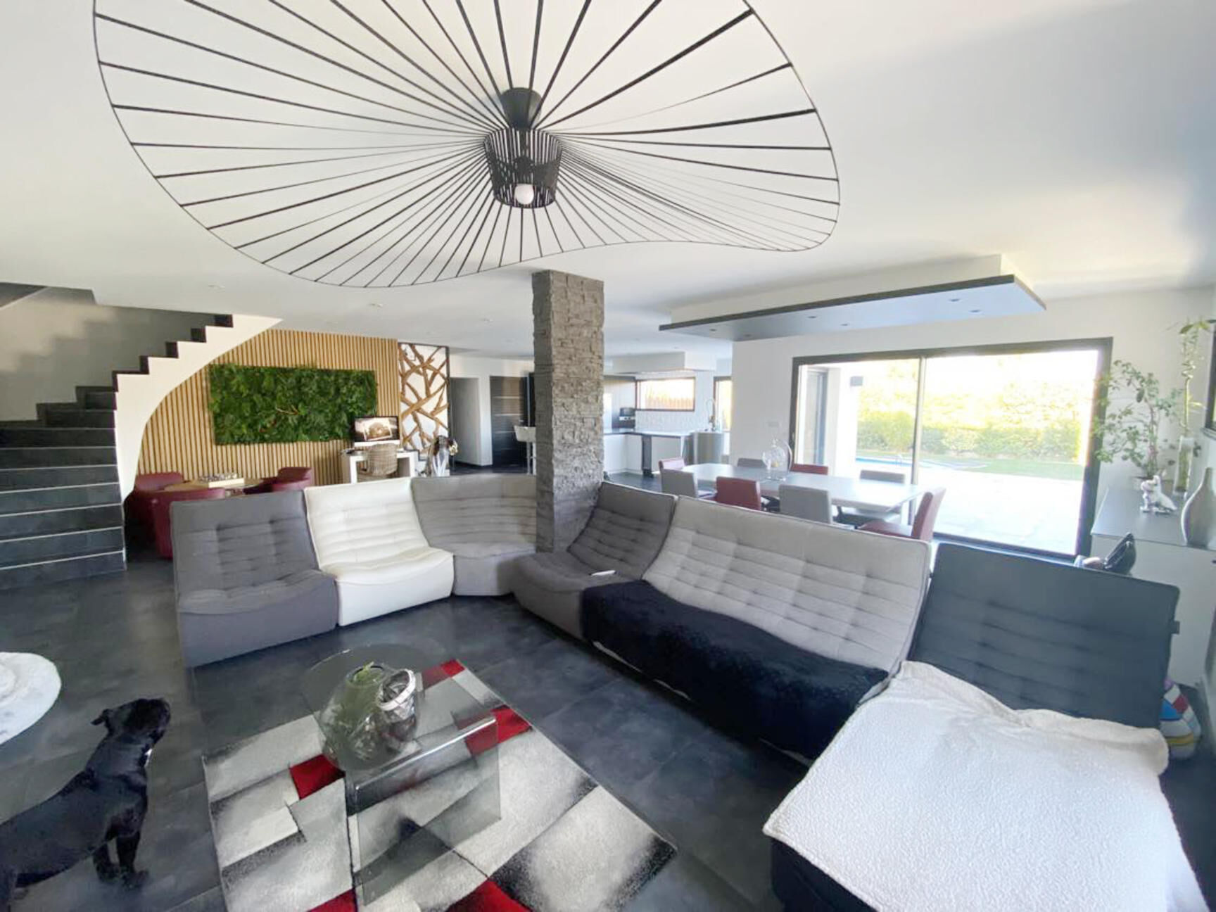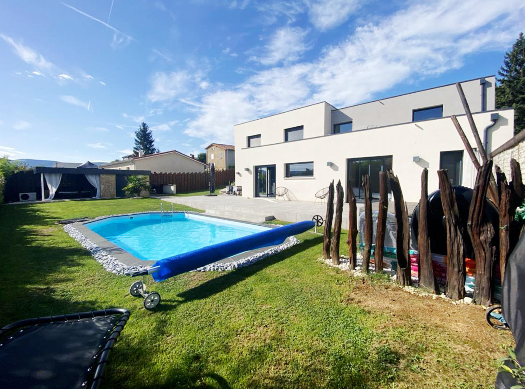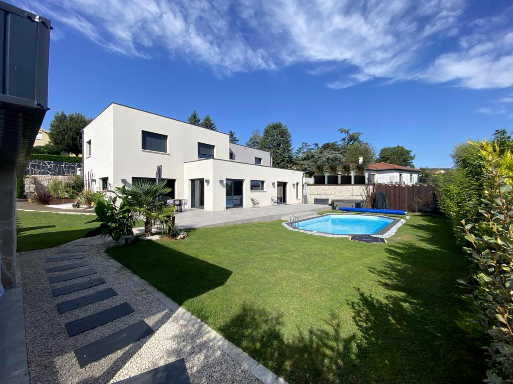 Rhône et Saône immobilier vous propose cette très belle maison d’architecte 2020 d’une surface de 196 m² environ. Triple exposition. Sur un beau terrain paysagé de 750 m² exposition Sud-Est avec une magnifique vue sur les Monts du Lyonnais. La maison est composée au rez-de-chaussée de 90 m² de pièce de vie avec salle à manger, salon, belle cuisine entièrement meublée équipée, ouverte, une buanderie cellier, wc indépendant, une suite parentale avec un vrai dressing et une salle d’eau. À l’étage, 3 grandes chambres, avec salle de bain et douche. Une autre salle de bain et douche et wc indépendant. Belle propriété contemporaine de luxe avec des matériaux haut de gamme. Garage de 30 m² avec porte motorisé Piscine Chauffée et SPA 7 places Volets électriques et contrôlés par domotique Proximité de toutes commodités (commerces, école, transports, médecins). (Gare Sain-Bel 5 km – Accès rapide sur Lyon) Idéal famille. Contactez-moi IRENE KOHUT O6.18. 48.69. 2O Vous pouvez contacter Irène KOHUT 06 18 48 69 20 irene.kohut@rhone-saone-immo.com.