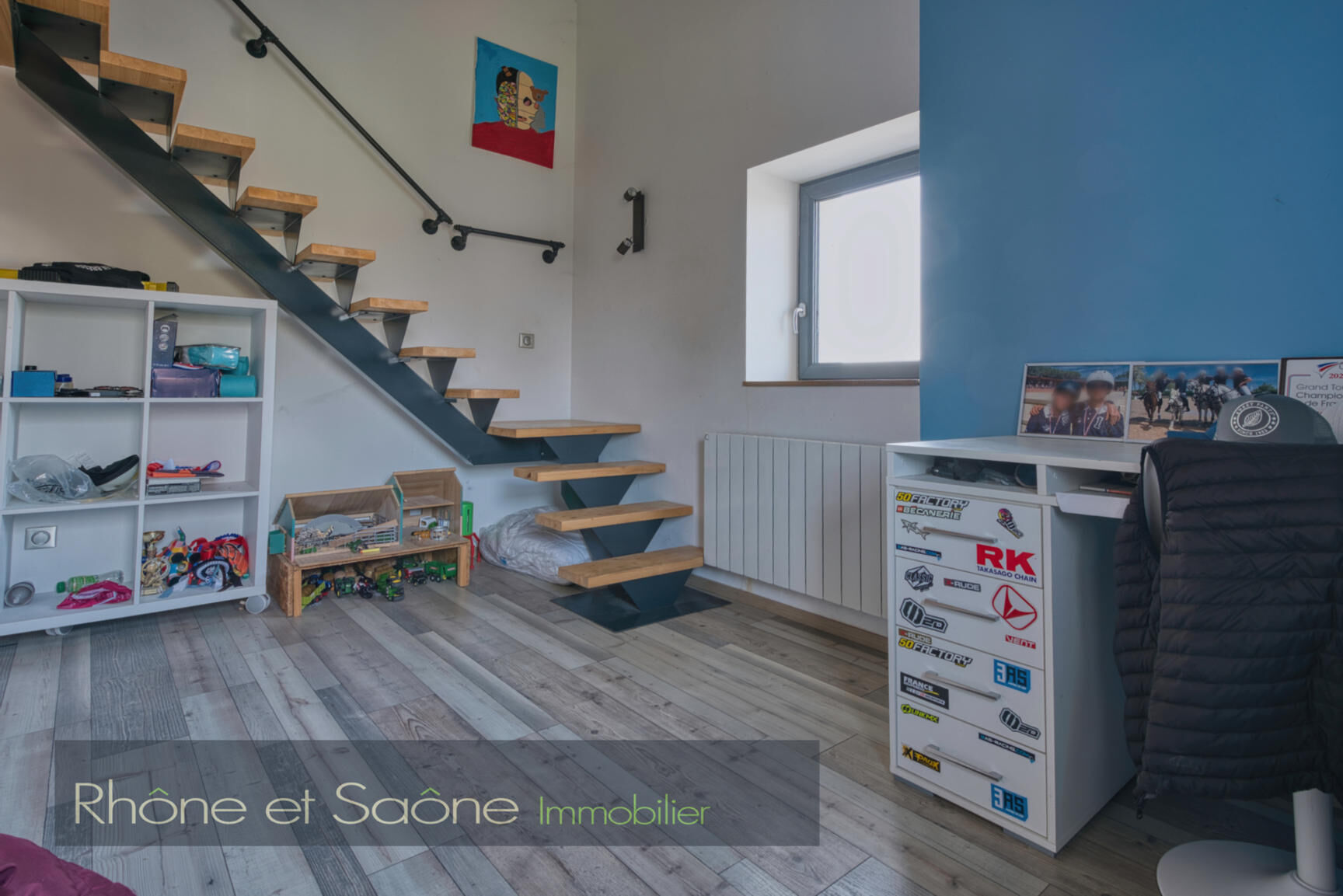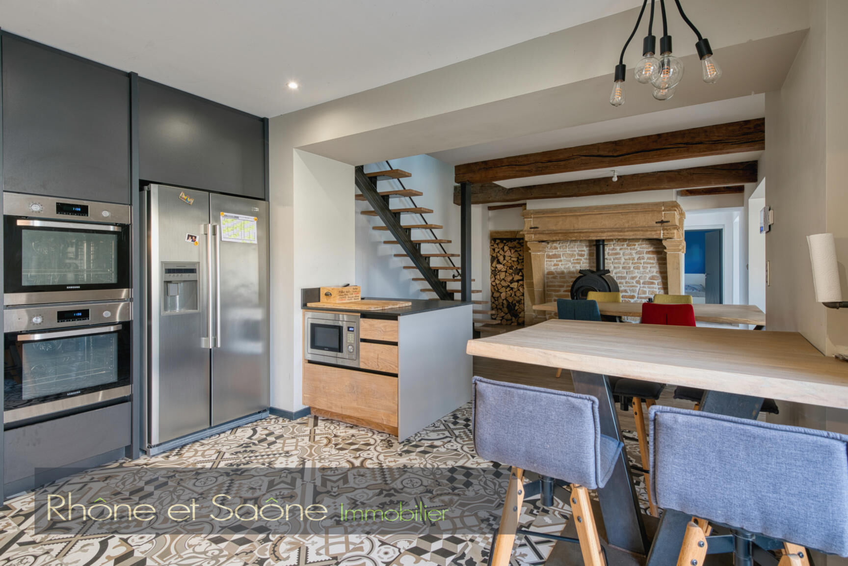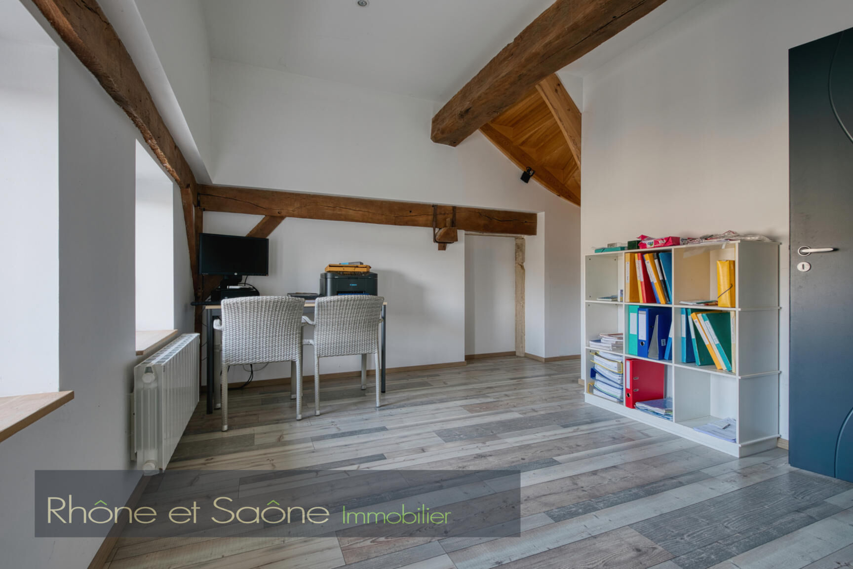 Il se compose au RDC d’un hall d’entrée, d’une belle pièce de vie de 70 m² avec cuisine US meublée équipée, d’un séjour, d’une salle à manger avec son poêle à bois, d’un cellier, d’une buanderie, d’une suite parentale, d’un bureau et un WC. À l’étage, une grande mezzanine, 2 chambres, salle de bain et WC. Au dernier niveau, dans le pigeonnier, une chambre en duplex. Un grand garage de 35 m² tout isolé avec mezzanine, un grenier et une cave complètent ce bien. Chauffage au sol au RDC, tout à l’égout, volets roulants électriques, adoucisseur, aspiration centralisée, huisseries alu et PVC, le confort du moderne allié au cachet de l’ancien, à découvrir au plus vite ! Pour visiter : 06 62 16 58 29 Vous pouvez contacter Laurence CAILLAUD 06 62 16 58 29 laurence.caillaud@rhone-saone-immo.com.