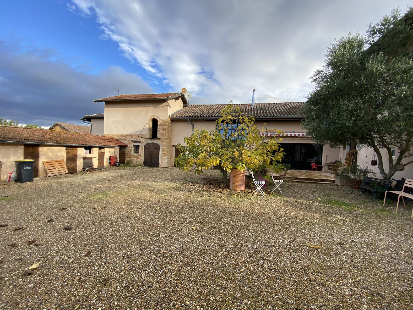FAREINS, à moins de 10 minutes de Villefranche sur Saône, coup de coeur assuré pour cet ancien corps de ferme en pisé de 1850 d'environ 260 m² ouvrant sur un magnifique terrain plat, clos et arboré de 1800 m² avec piscine au calme et sans vis à vis ! Au RDC, vous serez immédiatement séduit par la pièce de vie de 100 m² (Sud) avec son incroyable hauteur sous plafond, offrant une grande salle à manger en tomettes avec son poêle à bois et un salon TV en mezzanine, une cuisine meublée fermée ouvrant sur une terrasse à l'Est et la piscine, une chambre, une salle de bain (douche et baignoire), un wc et un hall d'entrée.