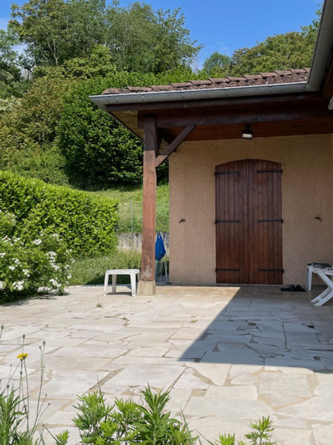 À Dagneux, dans un environnement calme et cadre de vie paisible, maison des années 1980 édifiée sur une parcelle de terrain de 750 m² avec piscine.